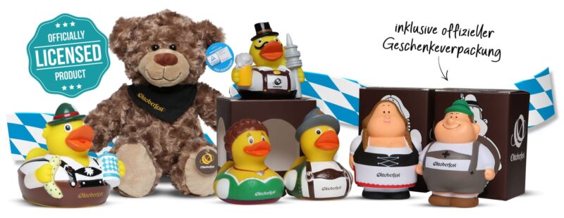 Das größte Volksfest der Welt zieht jedes Jahr Millionen Menschen aus aller Welt nach München und steht wie kein anderes für bayerische Tradition, Geselligkeit und Lebensfreude. Nutze diese besondere Stimmung für Deine Marke: Entdecke unsere Quietscheenten in Tracht, witzige Anti-Stress-Figuren und kuschelige Plüschtiere – alle verziert mit dem offiziellen Oktoberfest-Signet.
