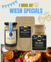 Geröstete Zwiebeln, Kräuter & Senf – diese Mischung sorgt für echtes Oktoberfest-Feeling. Mit individuellem Etikett ein origineller Kundenmagnet.